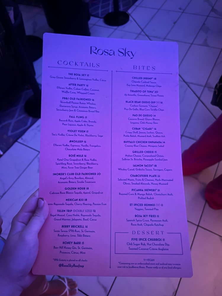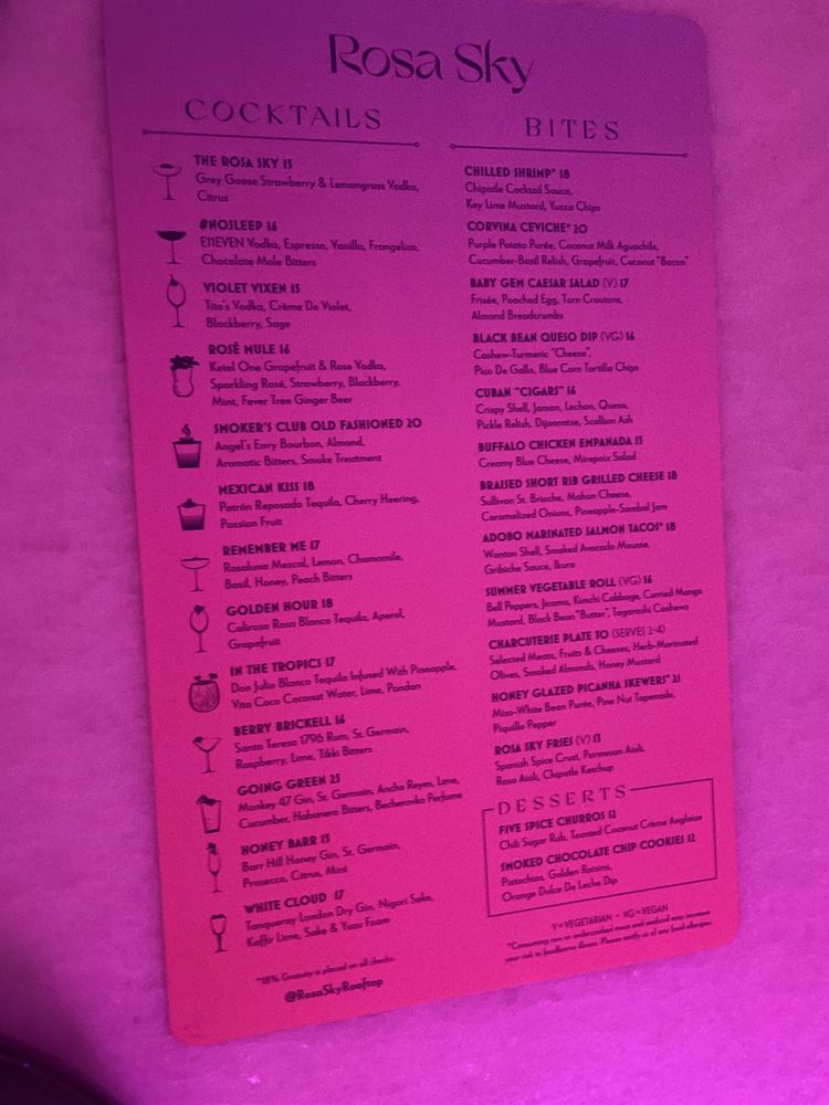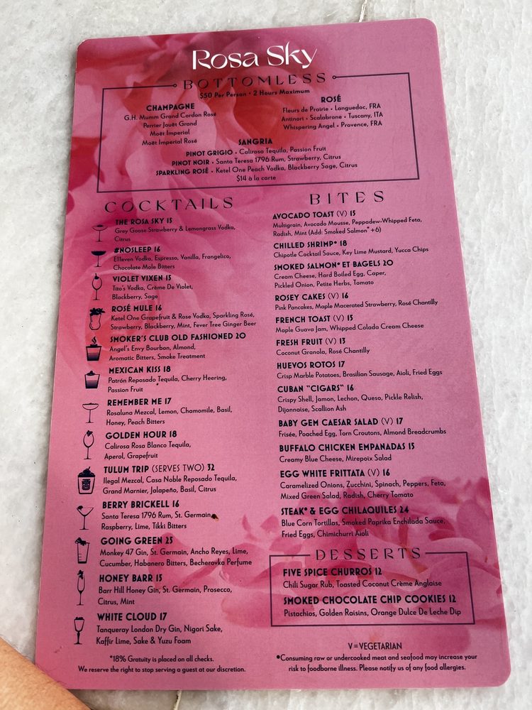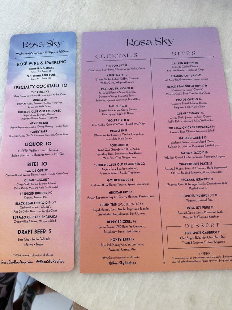 Rosa Sky Menu (2025 Update)