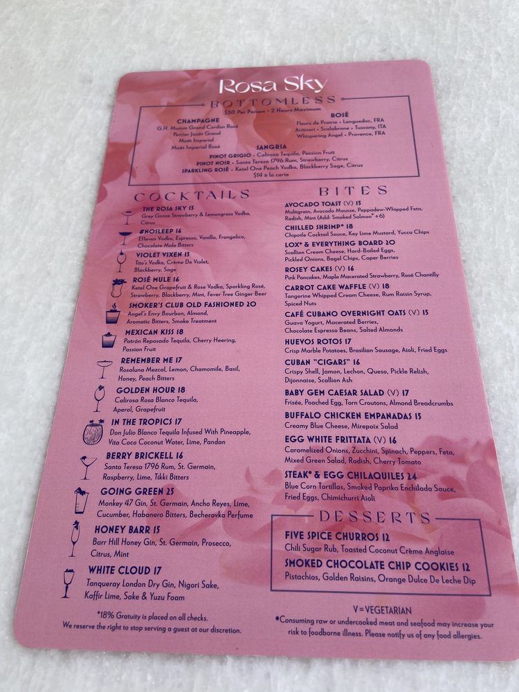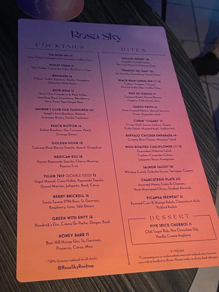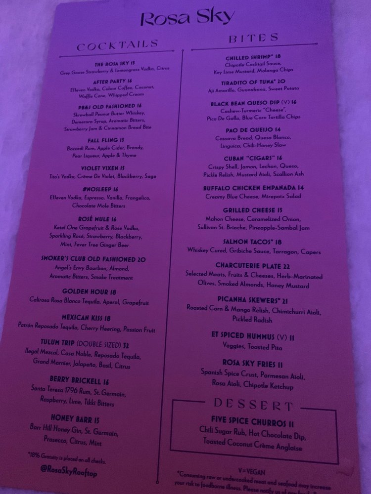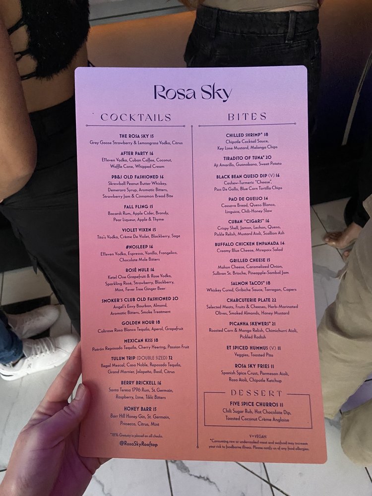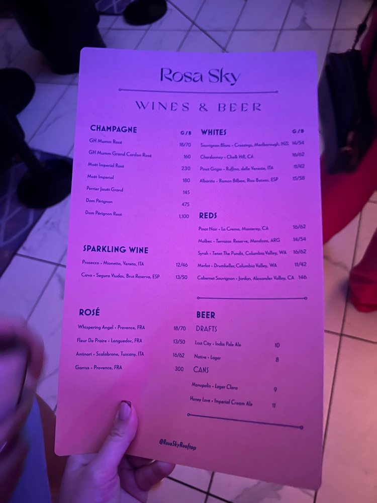 Rosa Sky Menu (2025 Update)