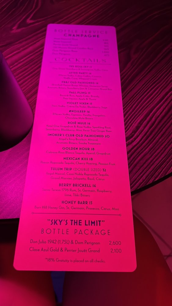 Rosa Sky, a trendy and upscale rooftop lounge in Miami, offers stunning skyline views and a laidback atmosphere, making it a perfect spot for a night out. The menu features creative cocktails and upscale, shareable bites that attract a chic crowd of locals and visitors. Customers rave about the phenomenal dishes on the Miami Spice menu and the impressive drink selection. The music sets a great vibe, and the service is both attentive and quality. Overall, Rosa Sky is a go-to spot for quality cocktails, beautiful views, and a memorable night out in Miami. With outdoor seating, garage parking, and happy hour specials, Rosa Sky provides a classy and romantic setting for guests looking to enjoy a sophisticated evening.